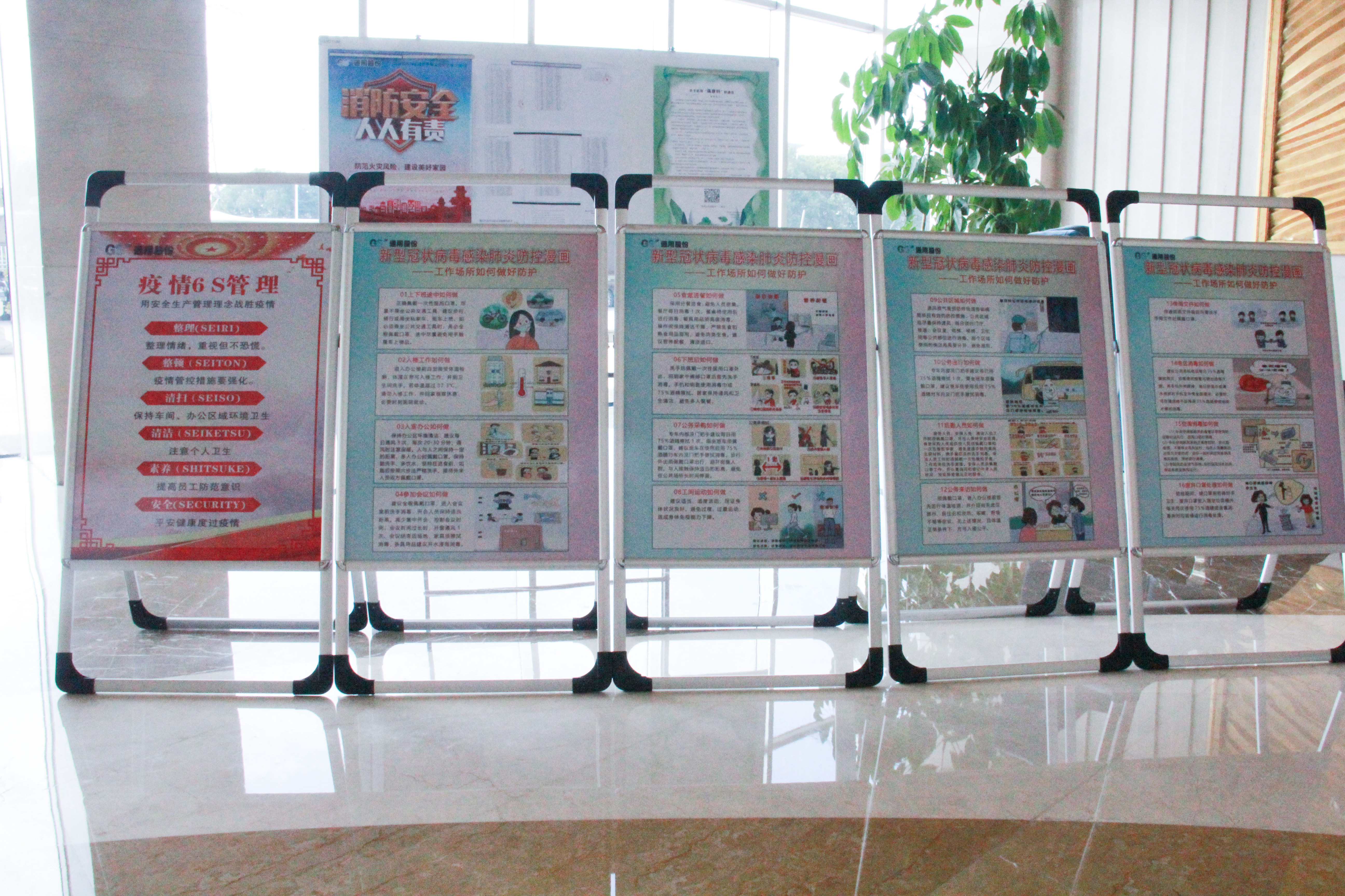 疫情防控之嚴密,從一些細節(jié)上就足以體現(xiàn)。“疫情6S管理”,“戴口罩,就餐前請洗手”……從辦公區(qū)域到工廠車間,類似的宣傳畫及標語鱗次櫛比,同時公司開展全員線上培訓,在潛移默化中提醒員工提升防控意識、提高自我防護能力。