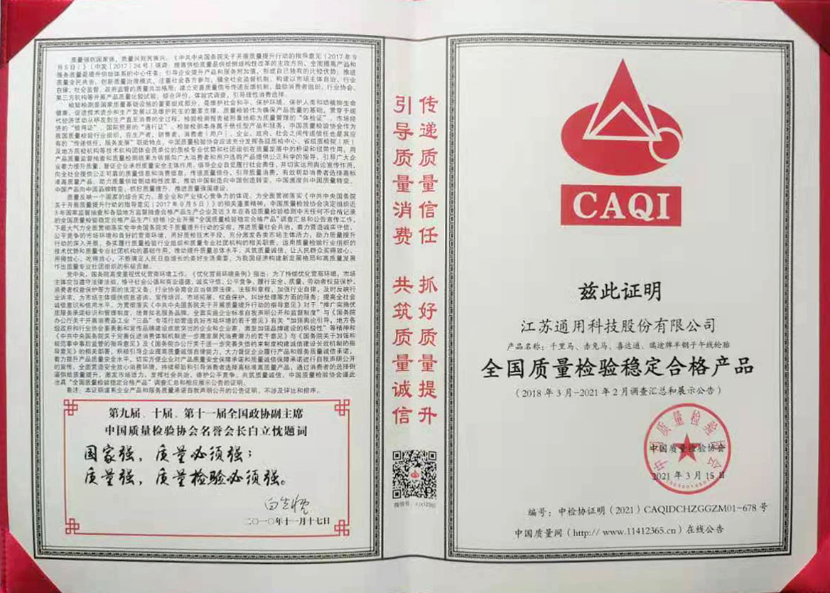 產(chǎn)品質(zhì)量是企業(yè)發(fā)展的基礎(chǔ),作為中國(guó)民族輪胎領(lǐng)軍企業(yè)之一,通用股份秉持“讓每一條輪胎成為精品”的企業(yè)使命,全方位深耕質(zhì)量管理,建立了嚴(yán)苛的產(chǎn)品質(zhì)量標(biāo)準(zhǔn),完善的內(nèi)部質(zhì)量監(jiān)控和管理體系,并形成了獨(dú)具特色的《質(zhì)量三字經(jīng)》、《輪胎當(dāng)自強(qiáng)》等質(zhì)量文化,從思想上引導(dǎo)、提升、深化全員質(zhì)量意識(shí)。公司從原材料采購(gòu)、生產(chǎn)制造到產(chǎn)品出廠(chǎng),全面貫徹“質(zhì)量一票否決制”,一旦有產(chǎn)品質(zhì)量方面的問(wèn)題,絕對(duì)不允許進(jìn)入下一道工序,嚴(yán)把質(zhì)量關(guān),確保為客戶(hù)提供高質(zhì)量的優(yōu)質(zhì)產(chǎn)品。