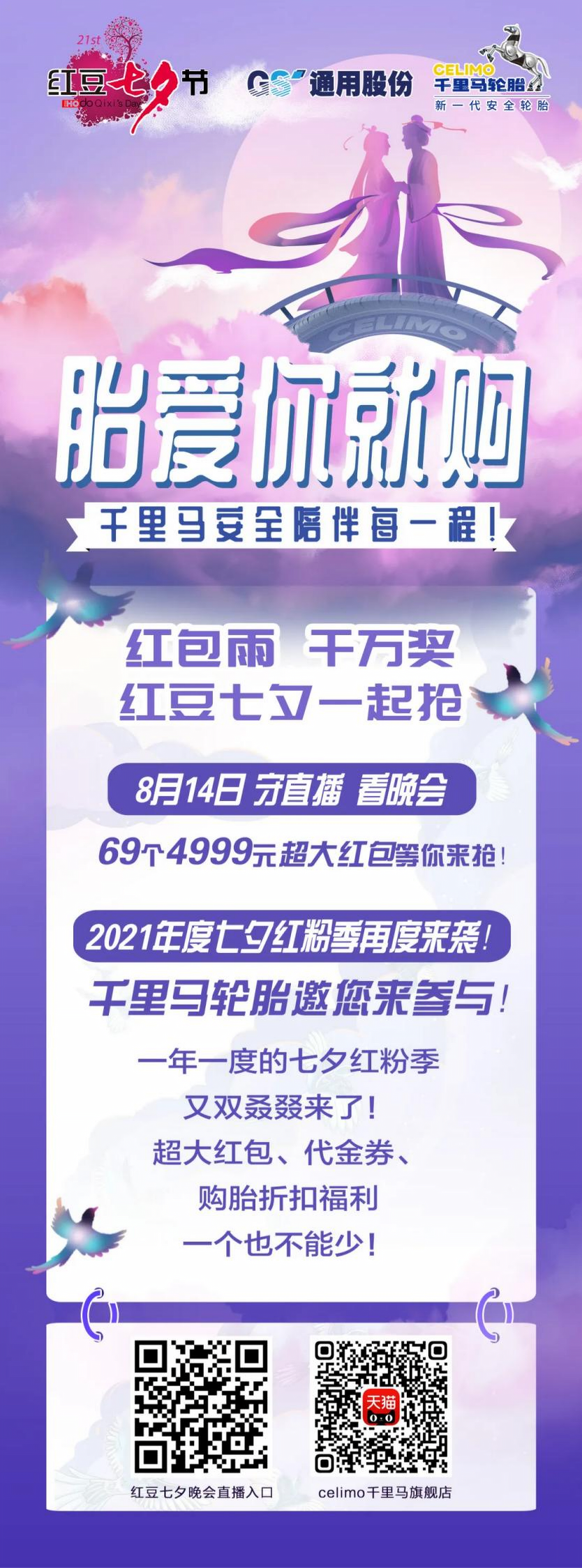紅包產(chǎn)生路徑:“celimo千里馬”天貓官方旗艦店將抽取一名幸運(yùn)消費(fèi)者,另外還將有68個(gè)4999元紅包名額將通過(guò)紅豆七夕晚會(huì)(2021年8月14日20點(diǎn)至22點(diǎn))在直播平臺(tái)現(xiàn)場(chǎng)瓜分。