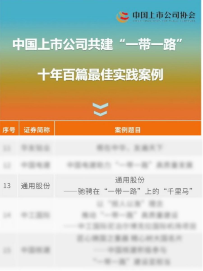 近日,中國(guó)上市公司協(xié)會(huì)發(fā)布《中國(guó)上市公司共建“一帶一路”十年百篇最佳實(shí)踐案例》,紅豆集團(tuán)控股子公司通用股份(601500.SH)的實(shí)踐案例《馳騁在“一帶一路”上的千里馬》實(shí)力“出圈”成功入選。
