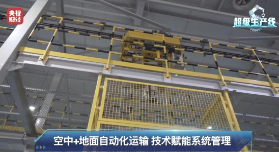 在成型車間內(nèi),智能化成型機(jī)有序運(yùn)轉(zhuǎn),酷似“太空艙”的胎體傳遞環(huán)更是成為鏡頭聚焦的亮點。隨著工人簡單地按下幾個按鈕,一條條輪胎胎胚便源源不斷地生產(chǎn)出來。這時,EMS自動小車通過機(jī)械手從各個成型機(jī)收取胎胚,在空中開始高速運(yùn)作。地面上AGV物流小車也行動自如進(jìn)行運(yùn)輸工作。 “空中+地面”的自動化運(yùn)輸充分滿足整個工廠快速輸送的需求。
