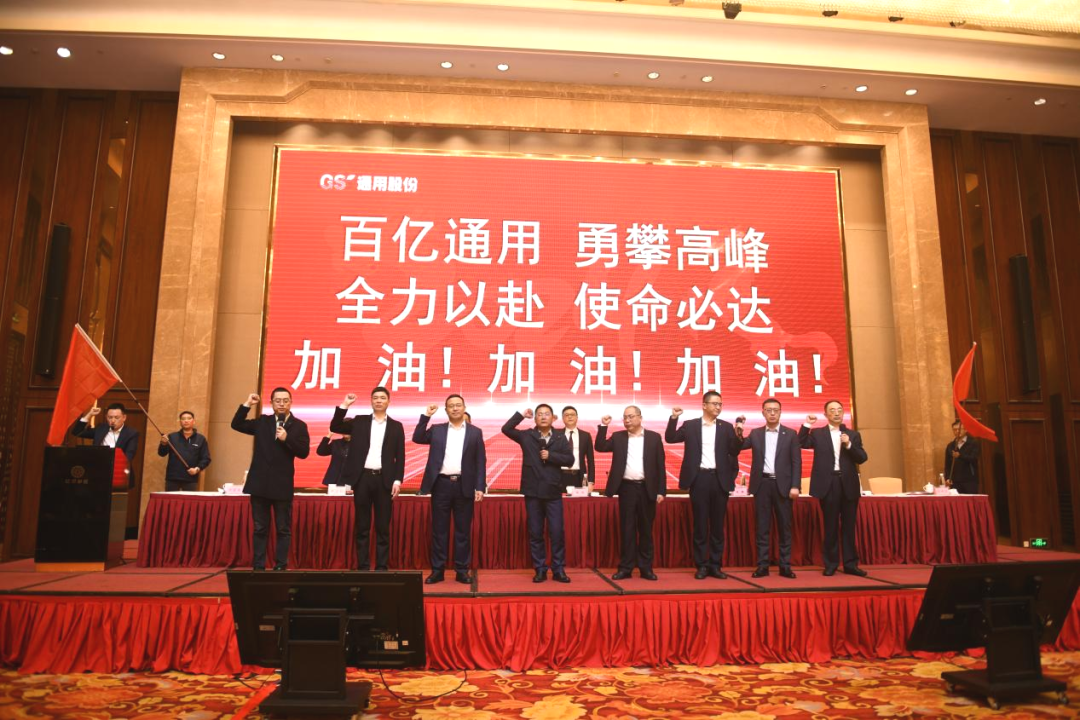 龍行龘龘、大干一場!新征程號角已吹響,戰(zhàn)旗正飛揚。會議最后,各版塊負責人以及全員進行誓師環(huán)節(jié)。“百億通用、勇攀高峰;全力以赴,使命必達......”鏗鏘有力的口號,傳遞了通用股份積極向上、拼搏進取的昂揚斗志與龍馬精神!