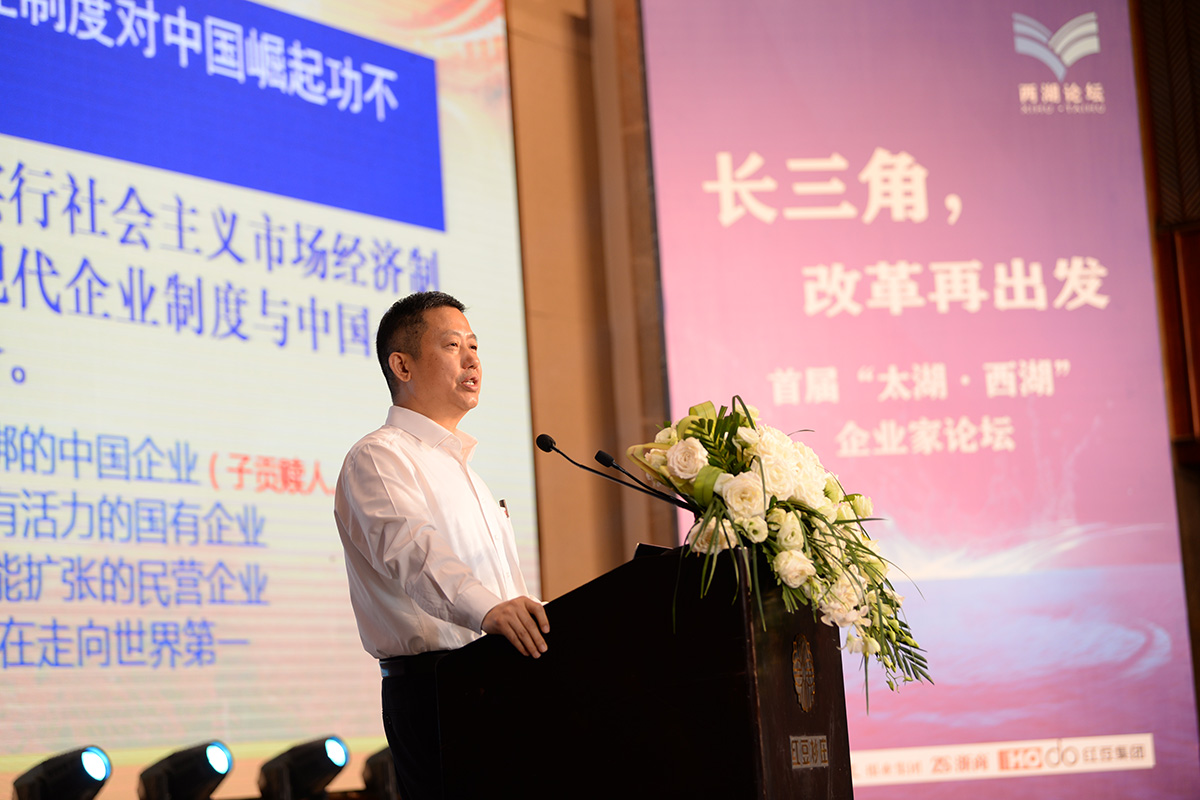 論壇上,洪銀興作了題為《積極應(yīng)對貿(mào)易戰(zhàn)》的主旨演講。“太湖•西湖”企業(yè)家聯(lián)盟宣布成立,“太湖•西湖”企業(yè)家聯(lián)盟宣言發(fā)布。紅豆集團(tuán)董事局主席周海江接受“太湖•西湖”企業(yè)家聯(lián)盟輪值主席授牌,無錫日報報業(yè)集團(tuán)黨委書記楊建代表聯(lián)盟秘書處接受授牌。江浙兩地企業(yè)家圍繞“長三角一體化發(fā)展中的企業(yè)家責(zé)任”展開圓桌對話。