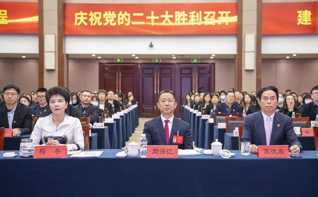會(huì)上,周海江從黨的二十大會(huì)議盛況、二十大報(bào)告主要內(nèi)容及深入學(xué)習(xí)貫徹落實(shí)黨的二十大精神等多個(gè)方面為波司登全體黨員作了深入的解讀,并列舉剖析了黨的二十大報(bào)告中的一系列新專題、新論斷、新提法,同時(shí)結(jié)合紅豆集團(tuán)工作實(shí)際,分享了民營企業(yè)學(xué)習(xí)貫徹落實(shí)黨的二十大精神的特色做法和經(jīng)驗(yàn)舉措,給波司登全體黨員作了一個(gè)生動(dòng)、深刻的報(bào)告,贏得了全場共鳴。